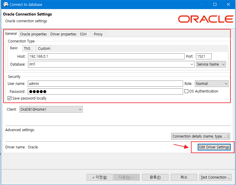 그 DB에 맞는 Driver를 세팅해주셔야 합니다.