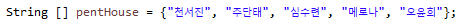 현재 pentHouse 라는 String array 변수가 있다고 하자.