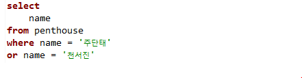 하지만 같은 컬럼에서 여러 데이터를 원할경우엔 IN 절을 사용하길 바란다.