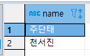 왜냐하면 AND 는 교집합 즉 name 이 주단태 이고 천서진 인 사람을 뽑았기 때문이다.