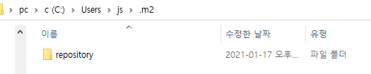 c드라이브 > users > 자신의폴더 > .m2 로 이동한다.