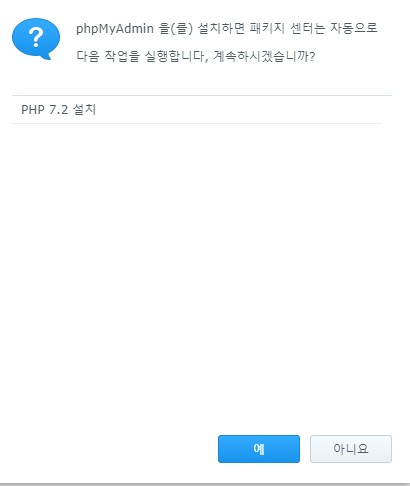 web station, MariaDB, phpMyAdmin 을 설치 해주면 된다.