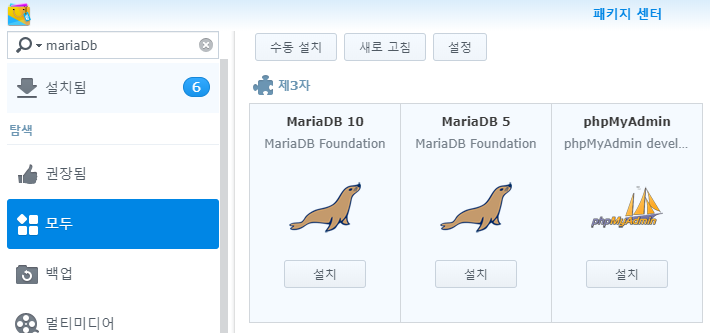 시놀로지 나스에 마리아DB 를 설치 해보겠다.