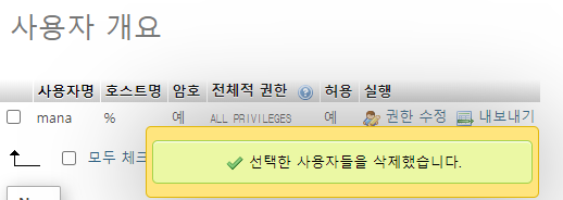 사용자를 추가한 후에 삭제하는건 당연한거겠지요..?