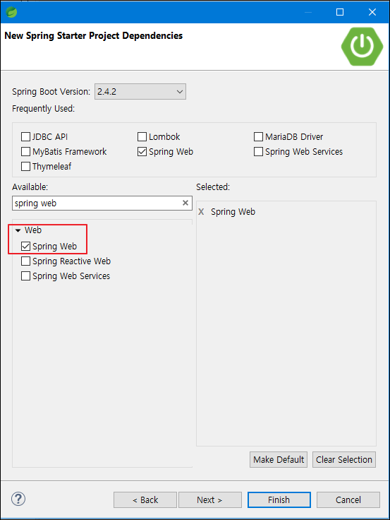 Spring Web 만 추가 해준다.