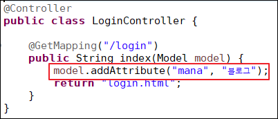 컨트롤러에 model 에 mana 라는 파라미터를 던져볼 예정이다.