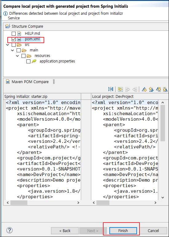 Finish 한다면 maven 이 알아서 다운받아준다.