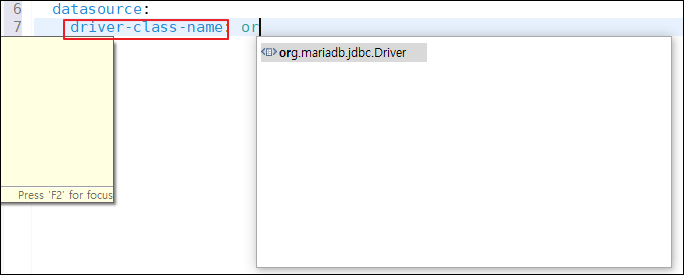 driver-class-name 해주고 or 정도만 쳐도 이미 다 완성해준다.