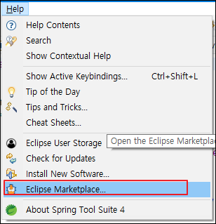 help > eclipse Marketplace 로 갑니다.