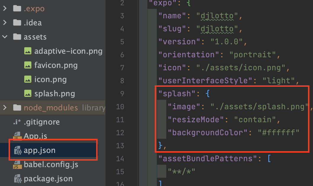 assets 폴더에 devjs_splash.png를 이미지를 넣고 app.json 경로도 수정해주었다.