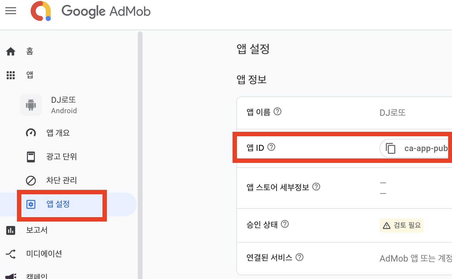 app-id는 admob 앱 설정에 보면 해당 앱의 ID가 나온다.