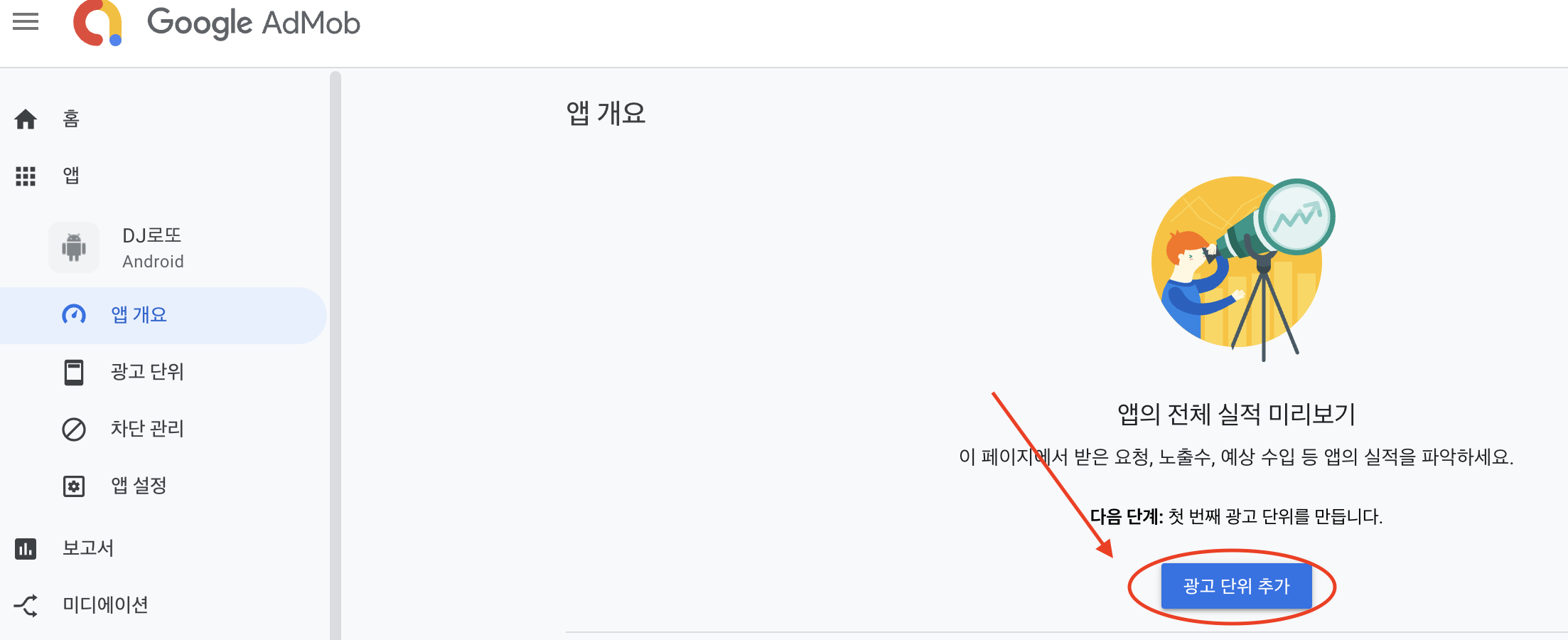 앱이 추가 됐다면 광고 단위 추가를 해준다.