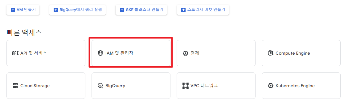 여러가지가 있지만 IAM및 관리자 클릭