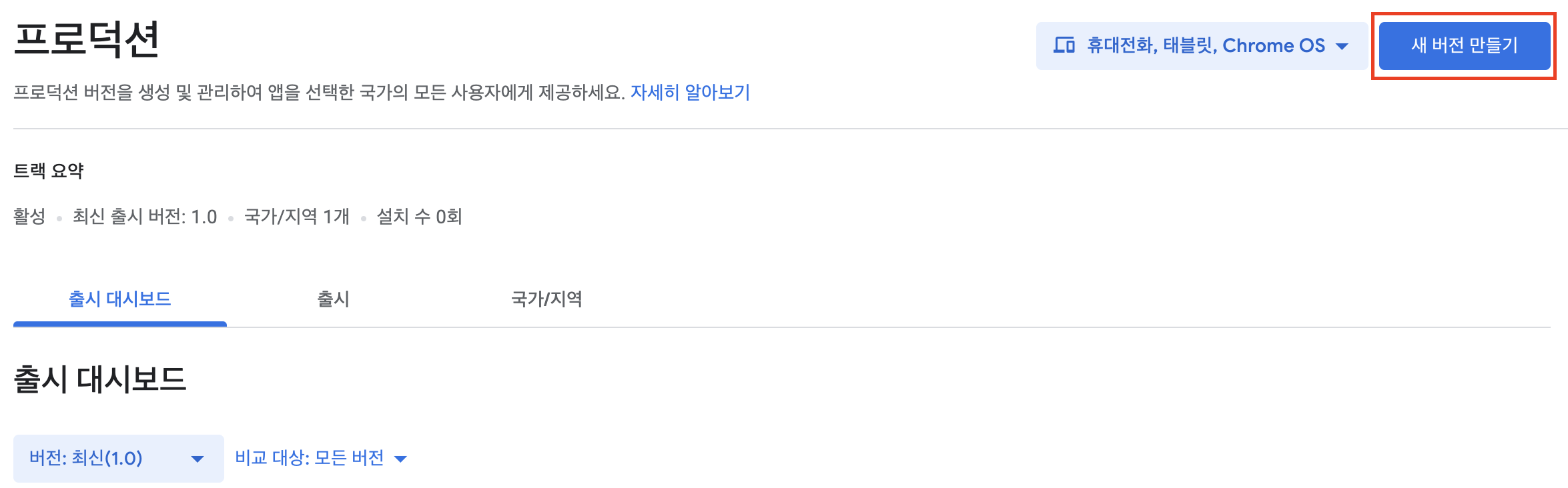이제 구글 콘솔에서 해당 앱의 프로덕션으로 가서 새 버전 만들기를 해준다.